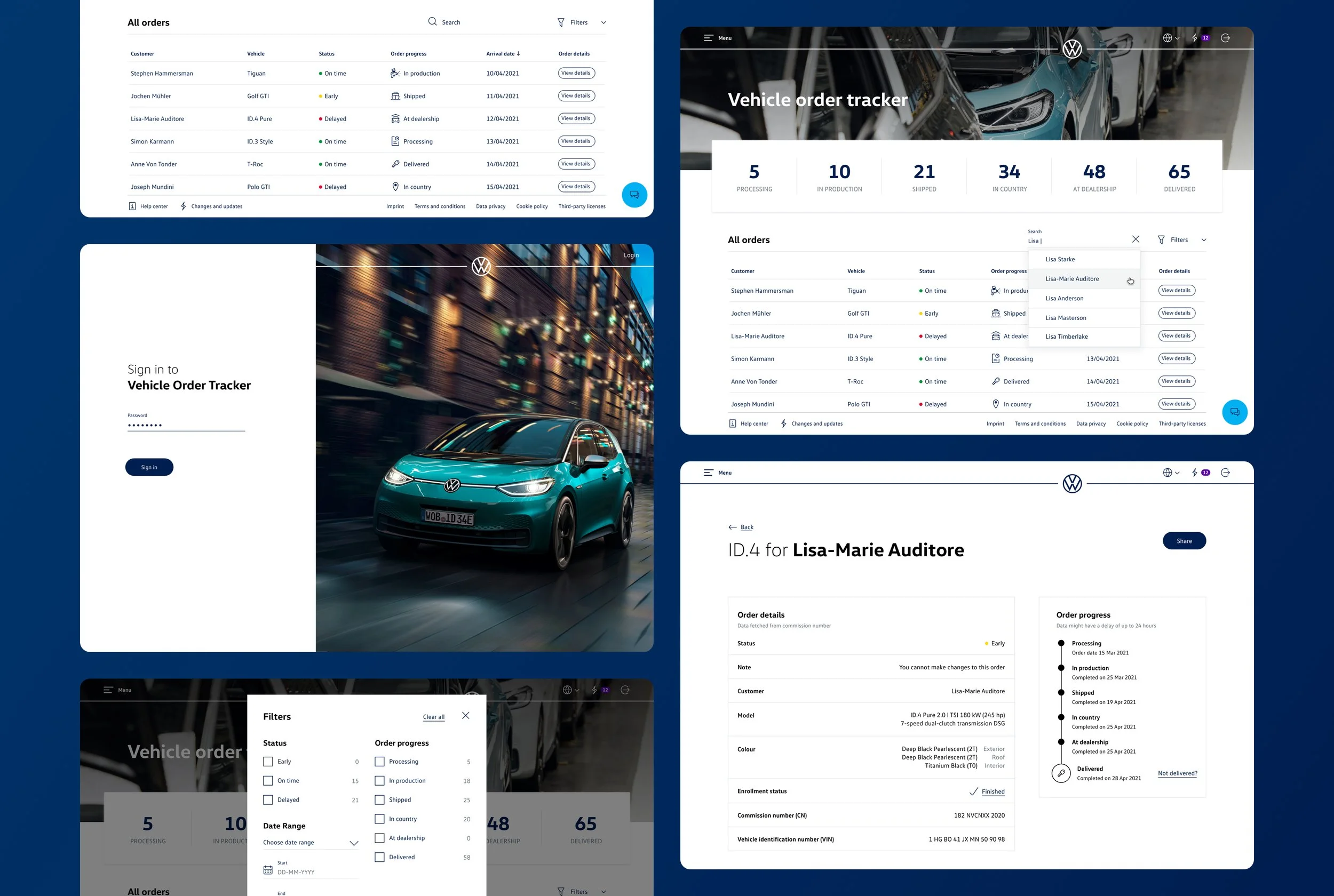 Volkswagen dealerships didn’t have a single, reliable system to track vehicle orders once they had been placed at the factory. Salespeople had to switch between outdated tools and manually piece together order statuses – leaving customers in the dark about when their cars would arrive (often waiting 3+ months). This created a poor customer experience and a lot of inefficiency for dealerships.